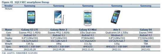 Из роадмапа также видно, что устройство оснащено 5-дюймовым дисплеем с разрешением 1920 х 1080 пикселей (эта информация уже была подтверждена ранее), 2 ГБ оперативной памяти, а в качестве операционной системы выступает Android 4.2 Jelly Bean. Релиз Galaxy S IV намечен на март.