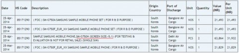 Еще не анонсированный смартфон Samsung SM-G750 с 5,1-дюймовым дисплеем был впервые обнаружен на индийском сайте Zauba, который отслеживает ввоз и вывоз товаров через границу страны. Известно, что разрешение экрана нового смартфона составит 1280х720 пикселей, что отличается от Full HD-разрешения флагманского Galaxy S5. Это позволяет предположить, что перед нами Galaxy S5 Neo, который получит такой же корпус, но менее мощное аппаратное обеспечение.