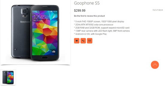 Samsung Galaxy S5 представили буквально два дня назад. Но его уже успели скопировать. Сотрудники Goophone уже подготовили копию флагмана, которая стоит $300.