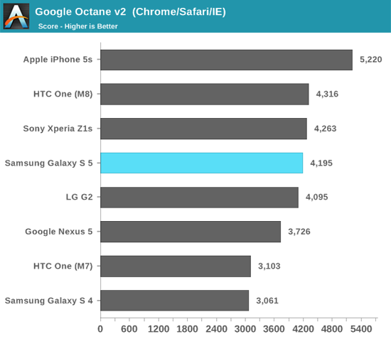 Эксперты издания Anandtech провели комплексное тестирование свежего смартфона Samsung Galaxy S5, сравнив новинку с устройствами от конкурирующих производителей. В ряде кроссплатформенных тестов, определяющих графическую и вычислительную мощность, корейский аппарат уступил смартфону iPhone 5s и тайваньскому флагману HTC One M8.
