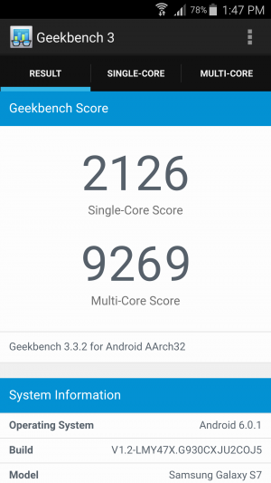 И вот, сегодня к нам попали результаты тестов Samsung Galaxy S7 с процессором Exynos 8890 в популярном бенчмарке GeekBench 3. Как видно из скриншотов, результаты действительно ошеломляющие. Гаджет набрал 2116 баллов в однопоточном тесте, и целых 9269 в многопоточном. Это почти в 2 раза больше, чем набирают текущие флагманы конца 2015 года.