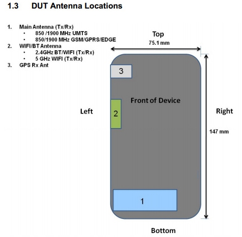 Смартфон получит поддержку мобильных сетей GSM/GPRS/EDGE 850/1900 МГц и UMTS 850/1900 МГц, а также беспроводных сетей Wi-Fi и Bluetooth. Упоминается возможность установки двух SIM-карт и ресивер GPS. Размеры корпуса составляют 147х75,1 мм.