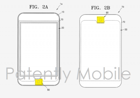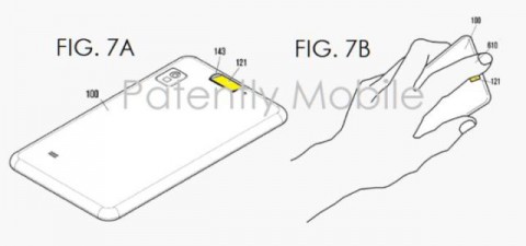 На сегодняшний день производители зачастую размещают сканеры отпечатков пальцев в смартфонах спереди, в кнопке "Домой" под дисплеем, на задней стороне под камерой и, совсем редко, на боковой грани. Samsung вот уже несколько лет отдаёт предпочтение именно первому варианту, но вполне возможно, что южнокорейский гигант рассматривает возможность и других способов установки дактилоскопического датчика. Новый патент компании описывает размещение сканера в верхней части задней стороны смартфона, что наглядно продемонстрировано на приложенных изображениях.