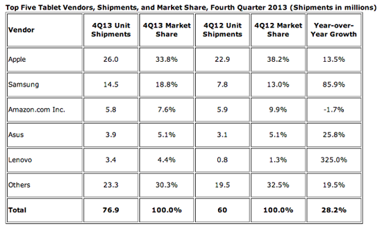 Получится ли у Samsung с их большой армией моделей отвоевать рынок у iPad? Кажется – да. Об этом говорит последнее исследование этого рынка от IDC. Результаты исследования показывают, что растёт доля как iPad, так и планшетов от Samsung, но последние растут со значительно большим темпом. В то же время рост продаж iPad замедляется, и если это вызвано обширным модельным рядом конкурента, то в этом году ситуация только усугубится. Компания Samsung уже сегодня готова наводнить рынок тонной моделей с разными экранами, со стилусами и без. Есть ли Apple что на это ответить?