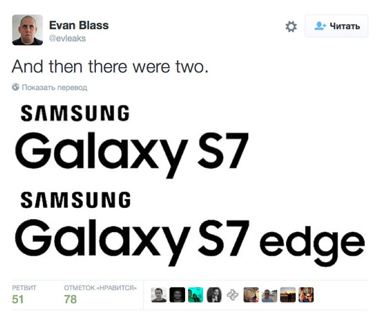 Согласно имеющимся данным, Samsung снабдит флагманские смартфоны Galaxy S7 дисплеем, чувствительным к силе нажатия, аналогичный таковому в iPhone 6s. Как и в случае с актуальной серией смартфонов Samsung, Galaxy S6, одна из моделей S7 будет выпущена в Edge-варианте с загнутыми краями. Ожидается, что устройство покажут 21 февраля и запустят в продажу в США 11 марта, дата поступления новинки в южнокорейские магазины неизвестна.