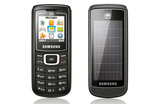 В 2009 году Samsung выпустила первый в мире мобильный телефон с солнечной батареей. Он получил название Samsung Guru E1107 и оснащался солнечной панелью, разместившейся на задней крышке корпуса. При воздействии на заднюю панель солнечных лучей генерировалось электричество, которое, в свою очередь, заряжало телефон.