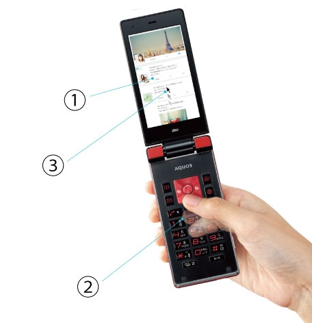 Ассортимент Sharp также пополнила «раскладушка» Aquos K (SHF31). В ней установлены 3,4-дюймовый экран с пиксельной плотностью 328 ppi, 1 Гбайт ОЗУ и 8 Гбайт флеш-памяти. Фронтальный фотомодуль отсутствует, а основная камера имеет 13-мегапиксельную матрицу. Ёмкость батареи равна 1410 мА·ч.