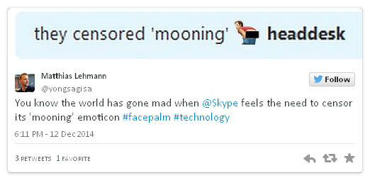 Цензуре подверглись два анимированных смайлика, которые не входят в стандартную либо расширенную подборку изображений в Skype. Для их отправки пользователь должен знать текстовую команду.