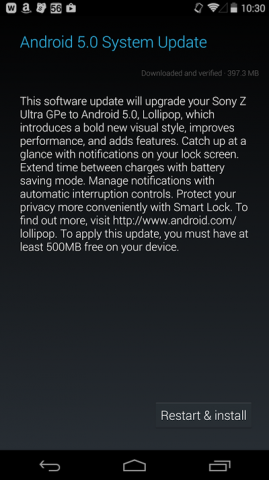 Sony Xperia Z Ultra GPE начал получать обновление до Android 5.0