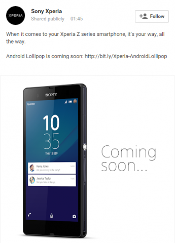 Точная дата выхода обновления для Sony Xperia Z пока не сообщается.