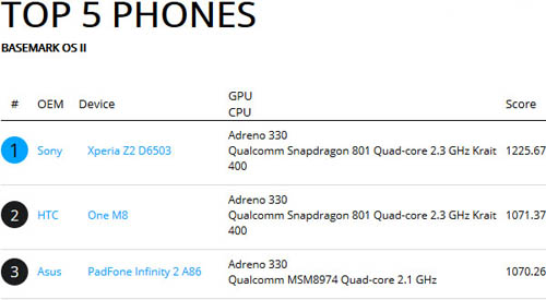 Sony Xperia Z2 обошёл HTC One (M8) в тесте Basemark OS II