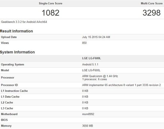 Про второй гаджет корейцев с QSD 808, получивший индекс F600L, пока известно крайне мало, ведь он засветился лишь в GeekBench. Бенчмарк показал только то, что новинка работает под управлением Android 5.1.1 и оснащена 4 ГБ оперативной памяти. Вполне вероятно, в GeekBench засветилась лишь модификация актуального флагмана, получившая иной индекс и больший объем ОЗУ.
