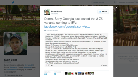 Раскрыть карты готовящихся к презентации девайсов решили сотрудники грузинского отделения Sony. По не вполне понятным причинам они опубликовали на своей официальной Facebook-странице не только план самого мероприятия, но и подробности таинственных новинок. Об этом сообщил твиттер-инсайдер Эван Бласс, больше известный как Evleaks.
