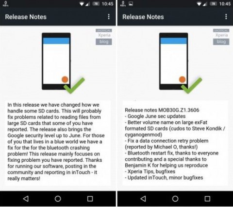 В обновлении Sony исправила проблемы с подключением к мобильной сети и Bluetooth, обновила приложения InTouch и Xperia Tips. Но главным изменением для многих станет исправление ошибки при чтении файлов с карт памяти большого объёма, с которой столкнулись некоторые пользователи.