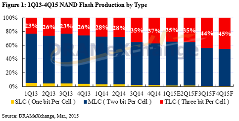 В связи с увеличением использования TLC NAND в мобильных устройствах, бытовой технике и SSD, спрос на такой тип памяти будет увеличиваться, а значит, будут расти и поставки. В результате, уже в третьем квартале около 44 % всей NAND флеш-памяти будет относиться к типу TLC. В четвёртом квартале доля энергонезависимой флеш-памяти типа NAND с трёхуровневыми ячейками составит уже 45 %.