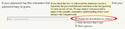 Если вам удалось одержать абсолютную победу над сервисом, то не стоит уж слишком ликовать. Реальный злоумышленник, в отличие от Telepathwords, может знать ваше имя, памятные даты, любимую еду, кличку домашнего животного, эти же данные друзей и близких. Да-да, зачастую окружающие нас люди и предметы становятся музой при сочинении пароля. К сожалению, искусственный интеллект гадалки также не распознает отличные от английского языка слова и фразы. Но не стоит сразу бросать камни, сервис самообучаем. Предлагаем вам проставить галочку напротив опции Donate my keystrokes to science.