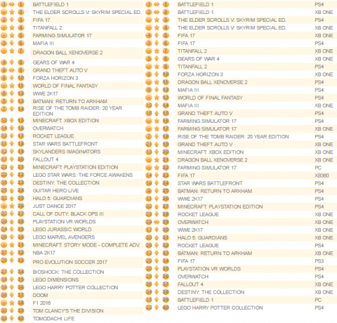 Titanfall 4 стартовала с четвёртой строчки чарта. Для сравнения, оригинальная Titanfall сразу после релиза заняла первую позицию и удерживала её несколько недель подряд. Боевик от Electronic Arts и Respawn Entertainment уступил Battlefield 1, переизданию Skyrim и FIFA 17.