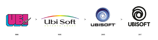 В 1986 году Ubisoft была только издателем, и ее красочный логотип в стиле диско это подчеркивал. В 1995 году появилась знаменитая серия Rayman, из-за чего французы решили поместить радугу сверху, которая говорит о создании контента для всей семьи. Наконец, в 2003 году у Ubisoft появились игры с подзаголовком Tom Clancy. Тогда руководство компании решило сделать логотип более жестким и реалистичным. Отсюда и появилась синяя спираль правильной формы. По мнению Ubisoft, она достаточно «жесткая» в творческом смысле, чтобы отражать новое направление компании.