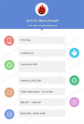 Бенчмарк AnTuTu уже не раз помогал блогерам и пользователям узнавать детали о смартфонах еще до их официальной презентации. На этот раз в недрах синтетического теста удалось обнаружить информацию о продукте от компании Vivo, получивший кодовое обозначение PD1516A. Как предполагается, тестирование прошел будущий флагман Vivo Xplay 5S.