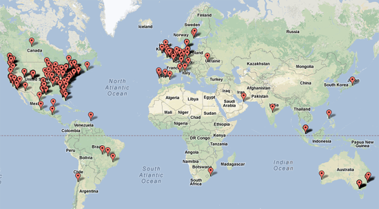 Один iOS-разработчик решил пойти на эксперимент, опросив некоторое количество людей, купивших билеты на WWDC 2013 и нанеся их на карту. Как и следовало ожидать, большинство оказалось из Европы и Северной Америки, однако имеются люди из Азии, Южной Америки, Австралии и даже Африки.