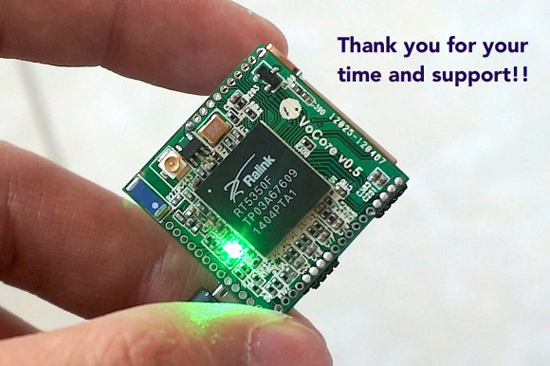 Всего за несколько дней сообщество профинансировало выпуск миниатюрного модуля VoCore, который работает на открытой прошивке OpenWrt под Linux и поддерживает WiFi. Судя по всему, на основе модуля можно делать идеальные шпионские устройства, маскируя их под книгу, зарядное устройство, пачку сигарет и т.д.