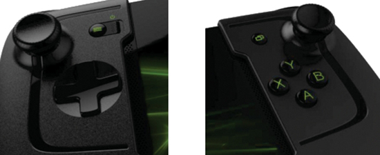 Разрабатывающееся устройство состоит из двух половинок-захватов, которые закрепляются в левой и правой частях мини-компьютерах. На них расположены игровые органы управления: два аналоговых джойстика, крестовина (D-pad), а также ряд кнопок. Таким образом, Gamevice позволит взаимодействовать с планшетом не только через сенсорный дисплей, но и посредством физических клавиш, фактически превратив его в портативную игровую консоль.