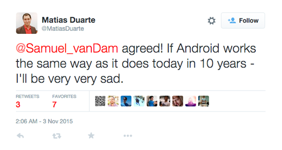 По словам главного дизайнера Google, если через 10 лет Android станет точно таким же, как сейчас, то он будет «очень-очень опечален».