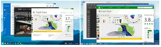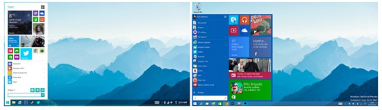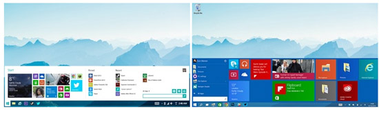 Слева концепт Мачалани, справа Windows 10 Technical Preview