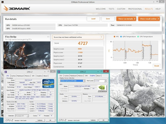 3DMark Fire Strike. Частота процессора 4,16 ГГц = 32x130 МГц. Результат – 4727 баллов