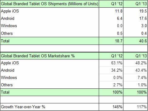 Доля Windows-планшетов выросла с 0 % в первом квартале 2012 года до 7,4 сегодня. Это очень быстро. В перспективе такой рост может привести Windows-планшеты к прямой конкуренции с iOS и Android-устройствами уже через год-два. И хотя столь долгосрочный прогноз не может быть объективным, нынешние темпы роста Windows на планшетах не дают поводов думать иначе.