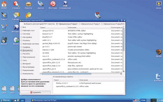Если же ваша машина целиком из прошлого века и не подлежит апгрейду, то вам стоит обратить внимание на специальные легковесные дистрибутивы Linux. Одним из самых распространенных из них является Puppy Linux, который успешно работает на процессоре Pentium I с оперативной памятью 32 мегабайта. Существует также PuppyRus Linux — русскоязычная система на его основе, которая, кроме локализации и русификации, содержит дополнительные утилиты и программы.