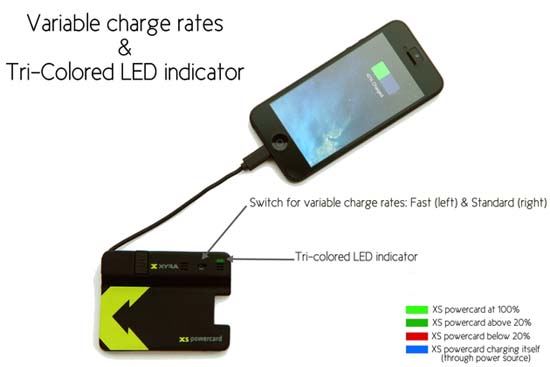XS powercard представляет собой внешний аккумулятор, который предоставляет возможность хранения данных и синхронизации между смартфоном и компьютером. Вдобавок ко всему, устройство сопоставимо по своим размерам с обычной пластиковой банковской картой, что позволяет носить его всегда с собой, положив в бумажник. В XS powercard предусмотрен слот для хранения кредитных карт и визиток. Габариты внешнего аккумулятора – 82,5 х 63 х 6,3-11,85 мм. Весит сие чудо 80 г.
