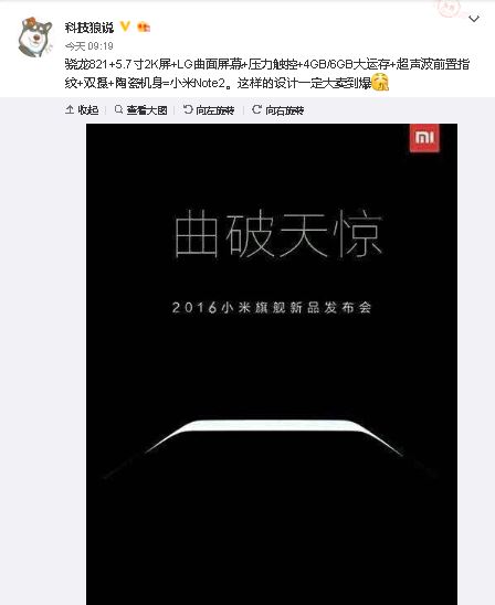 Xiaomi Mi Note 2: тизеры и предполагаемые характеристики флагмана