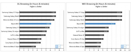 Однако есть ситуации, когда Xiaomi Mi5 проигрывает более именитым конкурентам. К примеру, Galaxy S7 Edge позволяет своим владельцам дольше сёрфить в сети.