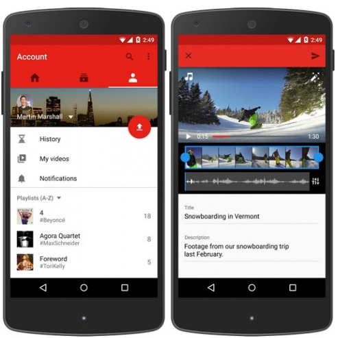 Приложение YouTube для Android получило крупное обновление, которое принесло с собой массу полезных нововведений. Одно из самых важных - встроенный видеоредактор. Данная опция позволит креативно настроенному пользователю добавлять к загружаемому видео музыку из бесплатной аудиотеки, обрезать ненужные моменты и добавлять визуальные спецэффекты на выбор. Среди других важных нововведений, которые появились в этой версии приложения, следует отметить смену дизайна заглавной страницы приложения - теперь она разбита на три владки.