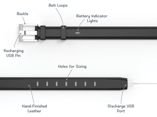 С Ion Belt пользователь может положить свой смартфон в карман и подключить его к дополнительному аккумулятору в ремне через незаметный провод. На устройстве присутствует светодиодный индикатор, который отображает состояние батареи. Обратите внимание, сам ремень сделан из кожи, то есть, кроме пряжки здесь все традиционно.