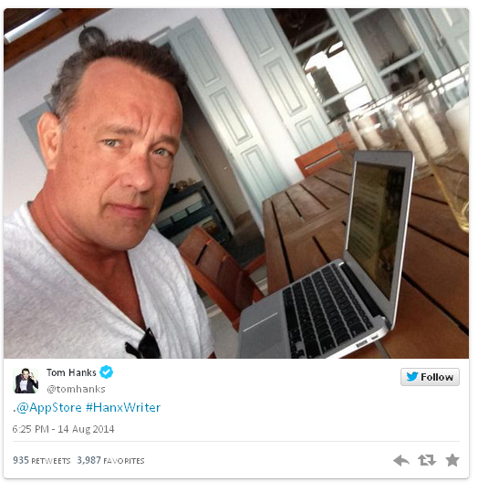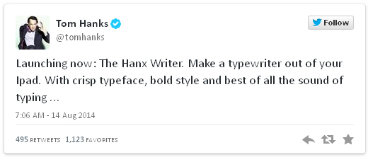 О выходе приложения Hanx Writer актёр Том Хэнкс сообщил в своём твиттере, подчеркнув, что оно имитирует не только шрифты, но и звук работающей печатной машинки.