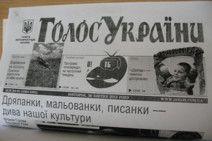 Інформація про Володимира Рибака. «Голос України» від 27.04.2013