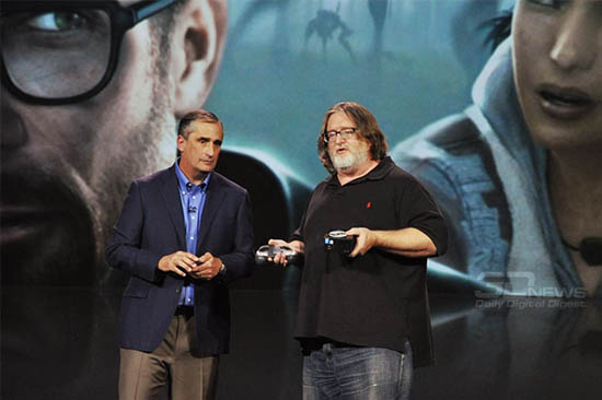 Господин Ньюэлл продемонстрировал на сцене работу игровой консоли, основанной исключительно на чипах Intel — речь идёт о Gigabyte Brix Pro. В основе этой Steam Machine, оснащённой 8 Гбайт оперативной памяти и 1-Тбайт накопителем, лежит процессор Intel Core i7-4770R с интегрированной графикой Iris Pro 5200. Система Brix Pro настолько компактна, что в руках Гейба Ньюэлла она кажется едва ли не меньше контроллера Valve Steam.