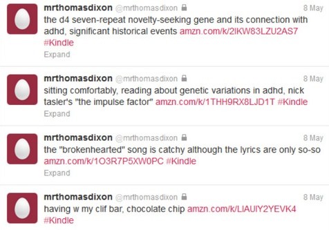 В свой твиттер Диксон записывает, что он читал, какой кофе пил и с кем встречался. Он фиксирует даже детали своей интимной жизни, но твиты такого рода пишет на корейском языке, чтобы не смущать никого из своих троих друзей-подписчиков.