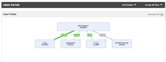 - Любые важные события внутри приложения. Например, регистрации на стартовом экране. Можно видеть, какая доля пользователей регистрируется сразу. И во Flurry, и в GA для этого надо настроить измерение ивентов.
