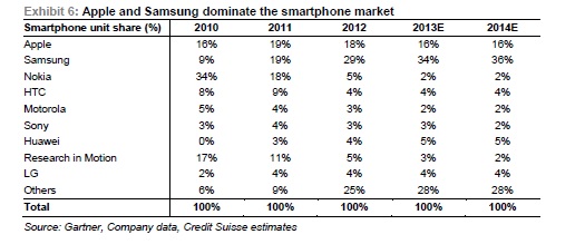 Швейцарские специалисты после представленных новинок на MWC 2013 теперь могут охарактеризовать iPhone 5 в лучшем случае как обычный смартфон высокой ценовой категории. У большинства показанных продуктов на прошедшей в Барселоне выставке куда более впечатляющие характеристики, чем у «яблочного» устройства. Более того, Credit Suisse предсказывает, что появление обновленной версии iPhone в середине этого года не даст Apple особых преимуществ перед конкурентами – например, Samsung Galaxy S 4 на данный момент кажется куда более интересным и сможет занять солидную долю рынка.