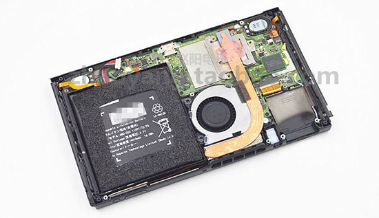 Начнём с той части консоли, которая сегодня волнует многих потенциальных покупателей Nintendo Switch больше всего. И нет, это не центральный процессор, и не GPU, а аккумулятор. Да, Nintendo открыто заявила, что консоль будет работать в портативном режиме от 3 до 6 часов в зависимости от нагрузки и конкретно взятой игры. Что ж, наши западные коллеги уже проверили это утверждение и пришли к выводу, что Nintendo не обманывает нас. Приставка действительно проработала около 3 часов с максимальной яркостью экрана в процессе игры в новую часть The Legend of Zelda. Это отличный результат, а секрет успеха кроется в аккумуляторной батарее ёмкостью 4310 mAh. Вы можете видеть на фотографии, что батарея занимает практически половину пространства внутри корпуса планшетной части приставки. Специалисты компании Digital Foundry по этому снимку предположили, что замена такой батареи в домашних условиях будет осуществляться довольно просто, однако сама Nintendo настаивает на том, что делать это необходимо исключительно в специализированных сервисных центрах.