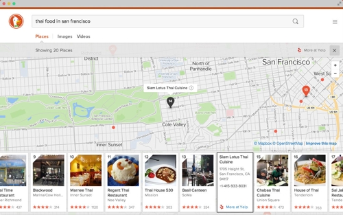 Изображения и видео теперь можно просматривать прямо в поисковой выдаче DuckDuckGo. Режим поиска локальных заведений позволяет видеть их на карте, читать описание и узнавать рейтинг. Еще один режим позволяет узнавать различные значения одного и того же слова.