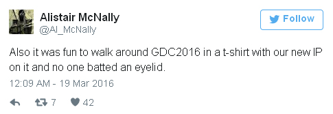 Директор студии Алистер МакНелли (Alistair McNally) вышел на сцену в футболке с намеком на новую игру. Но ни один из присутствующих в зале не обратил внимание на одежду выступающего. Поэтому МакНелли решил рассказать миру о секретном проекте на своем канале в твиттере: