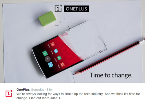Тизер достаточно прозрачно намекает на скорый анонс этого гаджета, и на нём показано наполовину стертое ластиком изображение сегодняшнего OnePlus One, под которым расположена многообещающая надпись: «Время перемен».