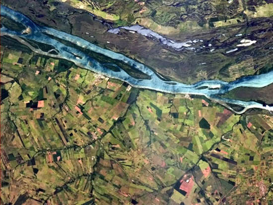 Блоггер-астронавт делится с читателями примерно десятью фотографиями каждый день. На них - вид сверху на знаменитые города вроде Нового Орлеана, или, например, на удивительные сельские пейзажи: есть снимок ярко-голубой реки в окружении невысоких фермерских строений и обширных полей в Бразилии.