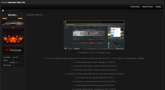 Основной рекламной площадкой трояна в интернете все эти годы выступает блог OussamiO на Blogspot (lost-door.blogspot.com), в котором создатель вредоноса регулярно публикует новости об обновлениях Lost Door, грядущих патчах и даже различные туториалы по использованию малвари. Многие из его уроков представлены в формате видеороликов, которые хакер не стесняясь выкладывает на YouTube. Кроме того, OussamiO уже несколько лет ведет собственную страницу в Facebook. Удивительно но факт: за это время никто даже не попытался забанить OussamiO ни на одном из сайтов.