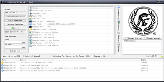 Lost Door поставляется с билдером, то любой покупатель трояна может создать на его базе собственную, вполне уникальную и работоспособную малварь. Lost Door – это настоящий мультитул. Будучи установлен на компьютере жертвы, троян предоставляет своему оператору доступ к файлам, возможность загрузки контента с устройства, возможность установки любого дополнительного ПО на скомпрометированный ПК, предоставляет доступ к веб-камере, может перехватывать нажатия клавиш. Фактически Lost Door полностью контролирует зараженную ОС.