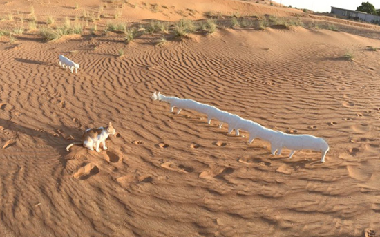 Баг панорамной съемки iPhone превратил гуляющую по пустыне кошку в гусеницу